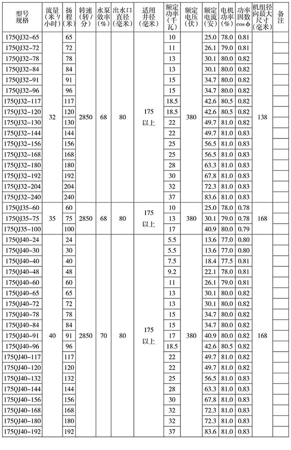 ( 1 ) 水溫 a:QJ 型 ≤20℃ b: QJ 型 ≤20℃